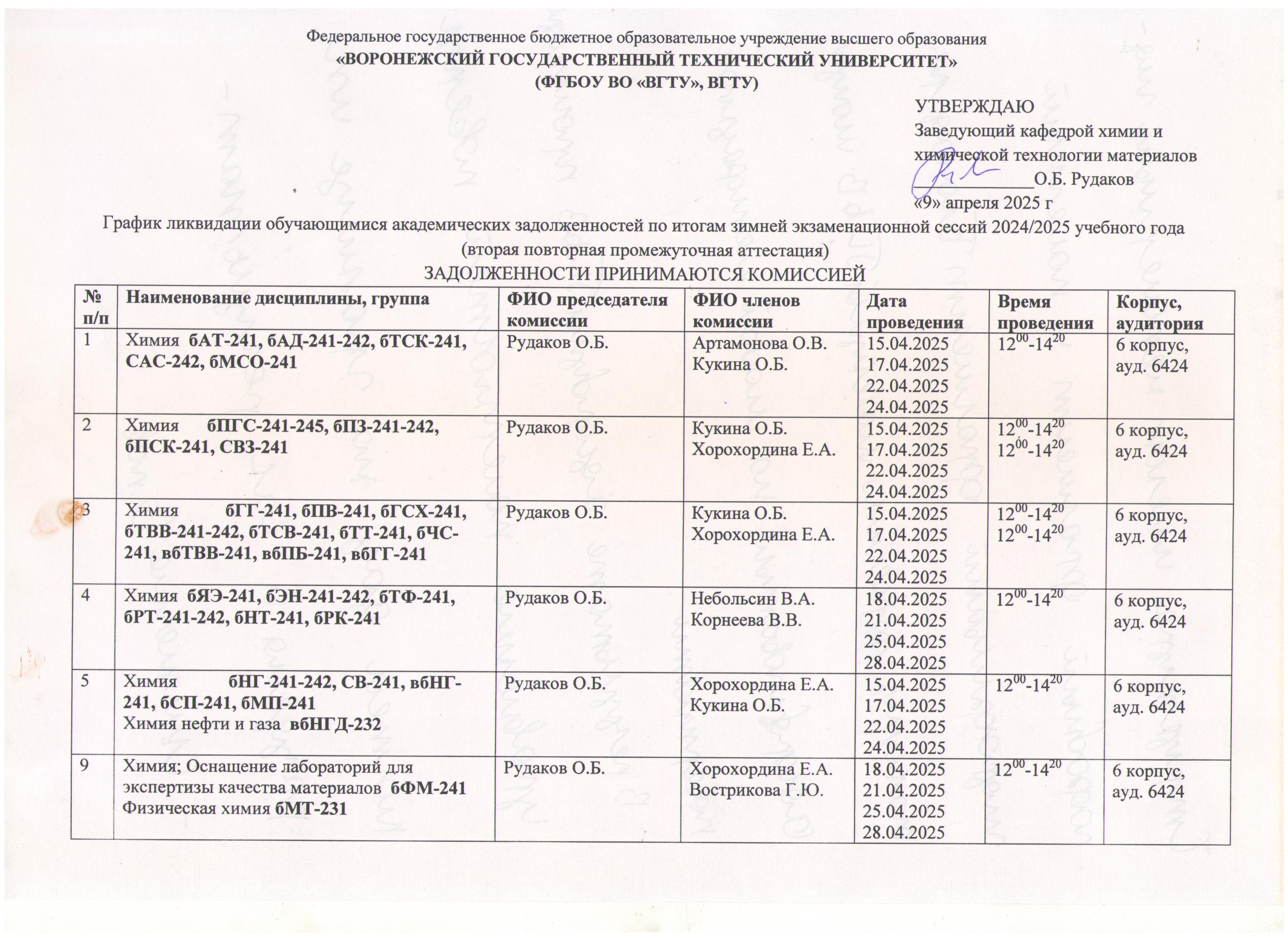С 2025 г. на кафедре ХХТМ открыто направление бакалавриата 22.03.01 Материаловедение и технологии материалов, профиль "Технология неорганических и полимерных композиционных материалов".