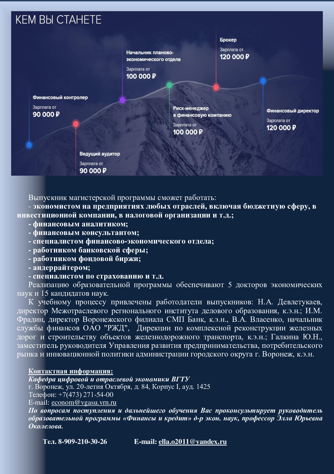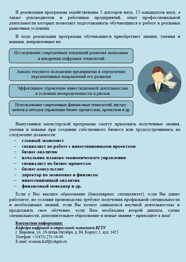 Кафедра цифровой и отраслевой экономики – отличный старт для карьеры в бизнесе, на государственной службе и в науке, базируется на факультете экономики, менеджмента и информационных технологий.