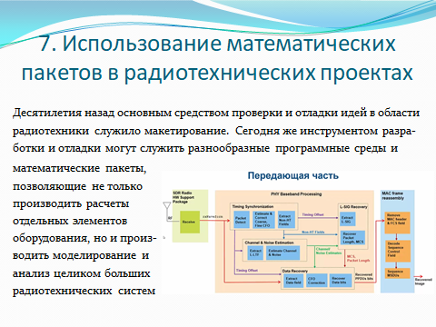 В процессе обучения студенты получают фундаментальные знания по математике, физике и информатике, а также солидную всестороннюю подготовку в области компьютерной техники. Студенты изучают программирование на алгоритмических языках высокого уровня, а также осваивают применение новейших прикладных пакетов программ для моделирования, проектирования и исследования радиотехнических устройств и систем.