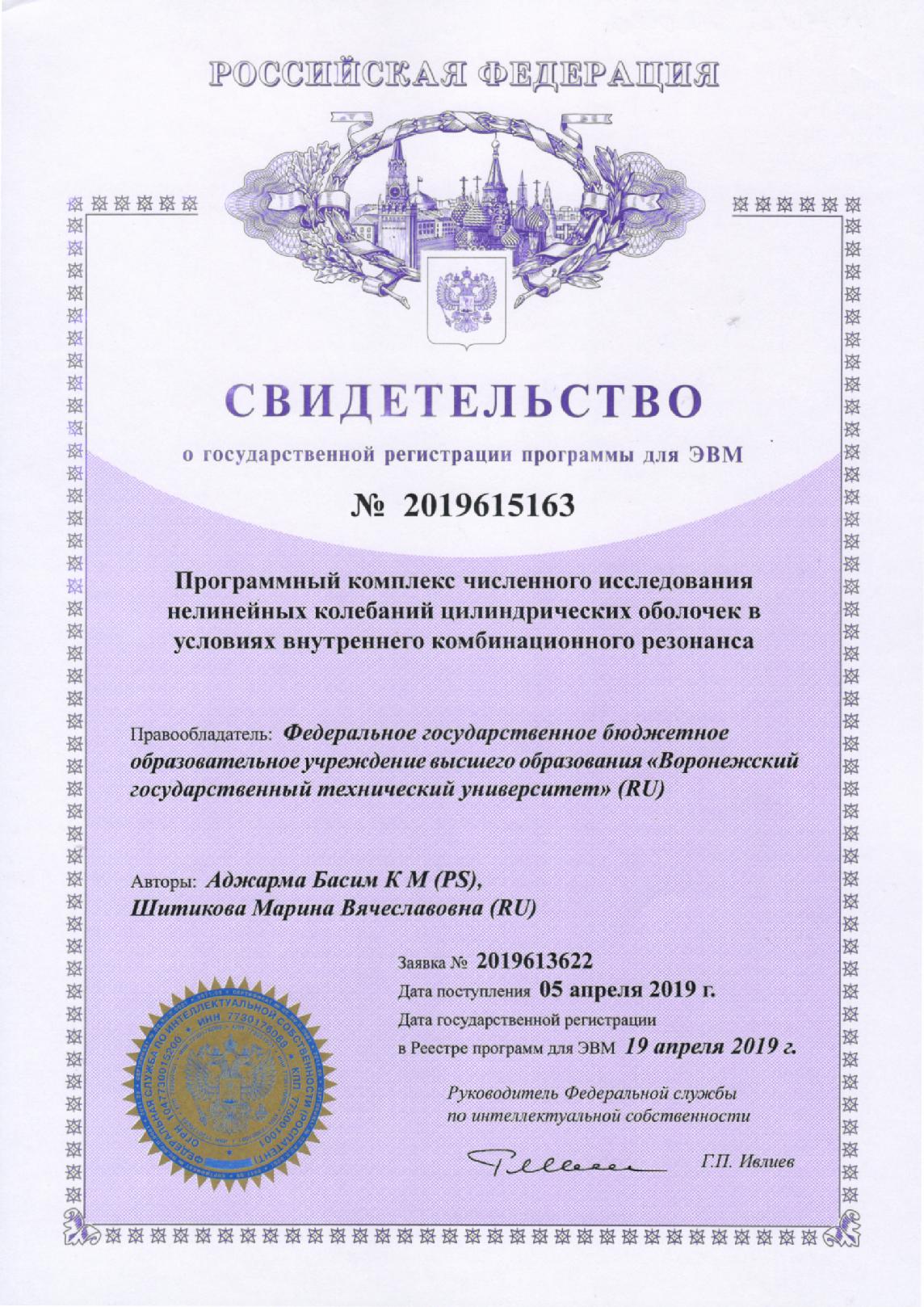 Свидетельство о государственной регистрации программы для ЭВМ №2025689299 Программа для моделирования штучного локального антивибратора
