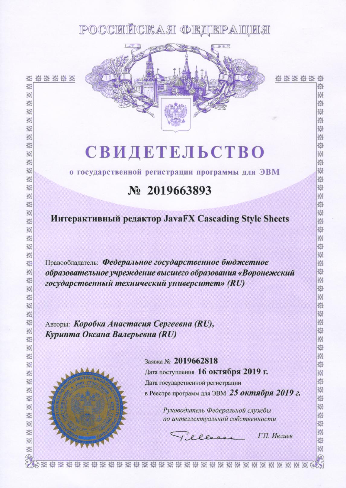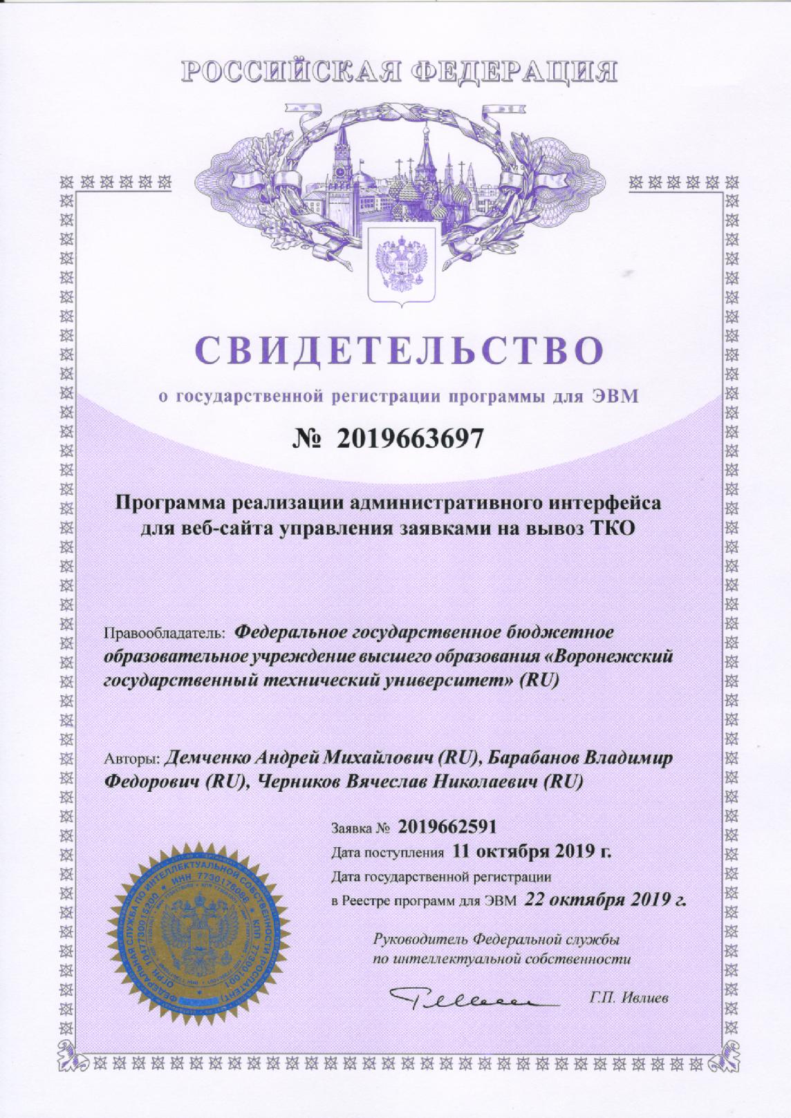 Свидетельство о государственной регистрации программы для ЭВМ №2025618200 Программа для автоматизации документооборота образовательного процесса