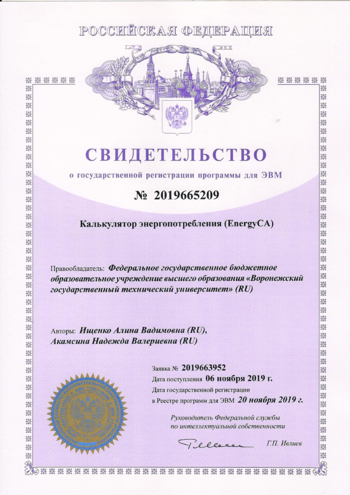 Свидетельство о государственной регистрации Базы данных №2025623874 Расчет экономической эффективности технических мероприятий, направленных на энергосбережение и повышение энергетической эффективности объектов капитального строительства