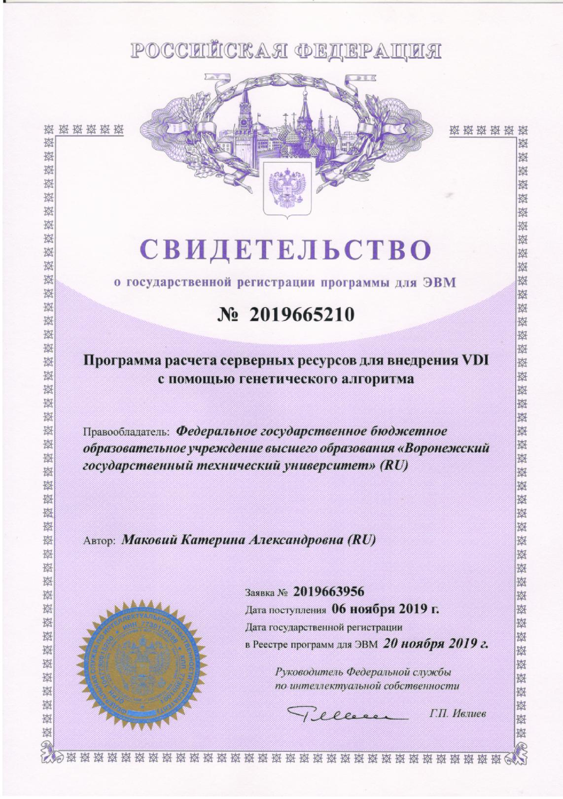 Свидетельство о государственной регистрации программы для ЭВМ №2025666164 Формирование оптимального календарного плана-графика выполнения работ для мелкосерийного