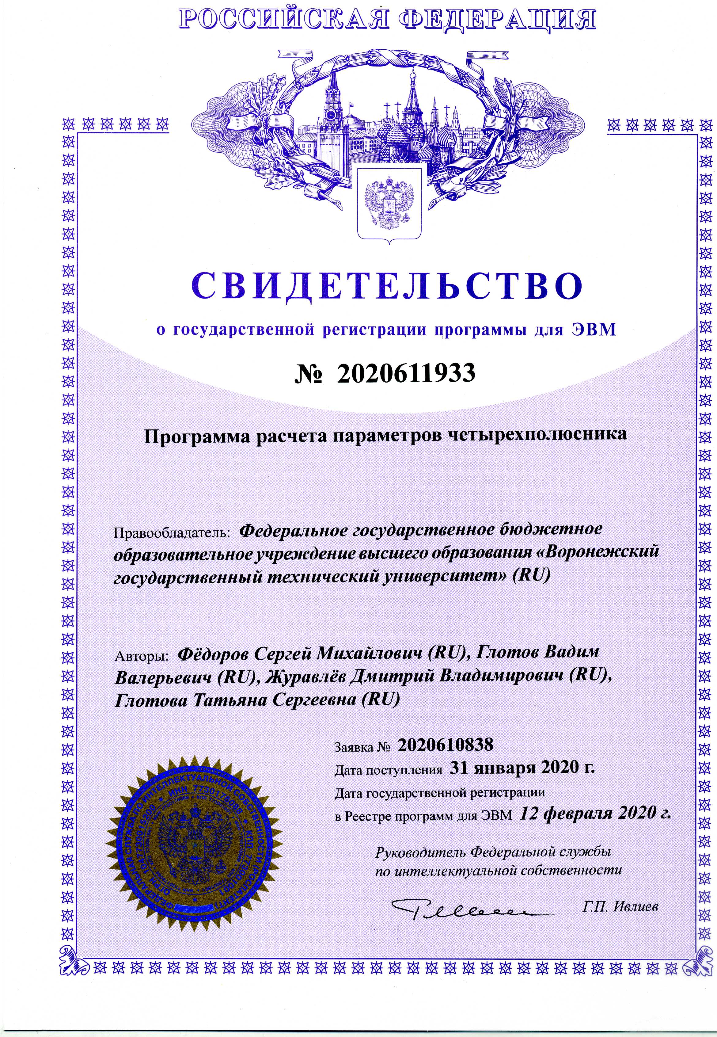 Свидетельство о государственной регистрации программы для ЭВМ №2024687902 Программа расчета эффективности электромагнитных параметров материалов на основе диэлектрических параметров