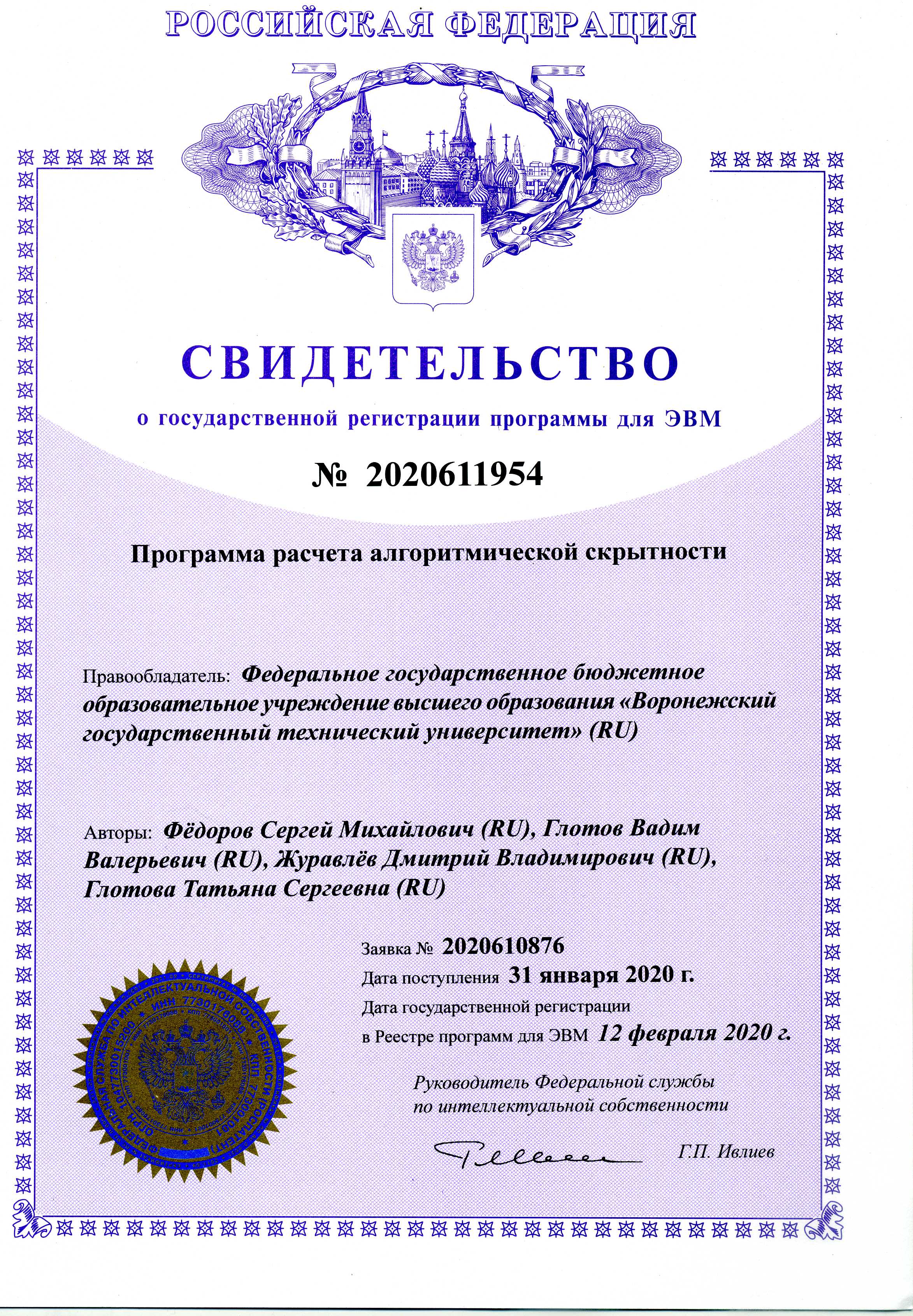 Свидетельство о государственной регистрации программы для ЭВМ №2025615539 Программа перевода степени данных из регистров с изменением их содержимого и последующим отслеживанием