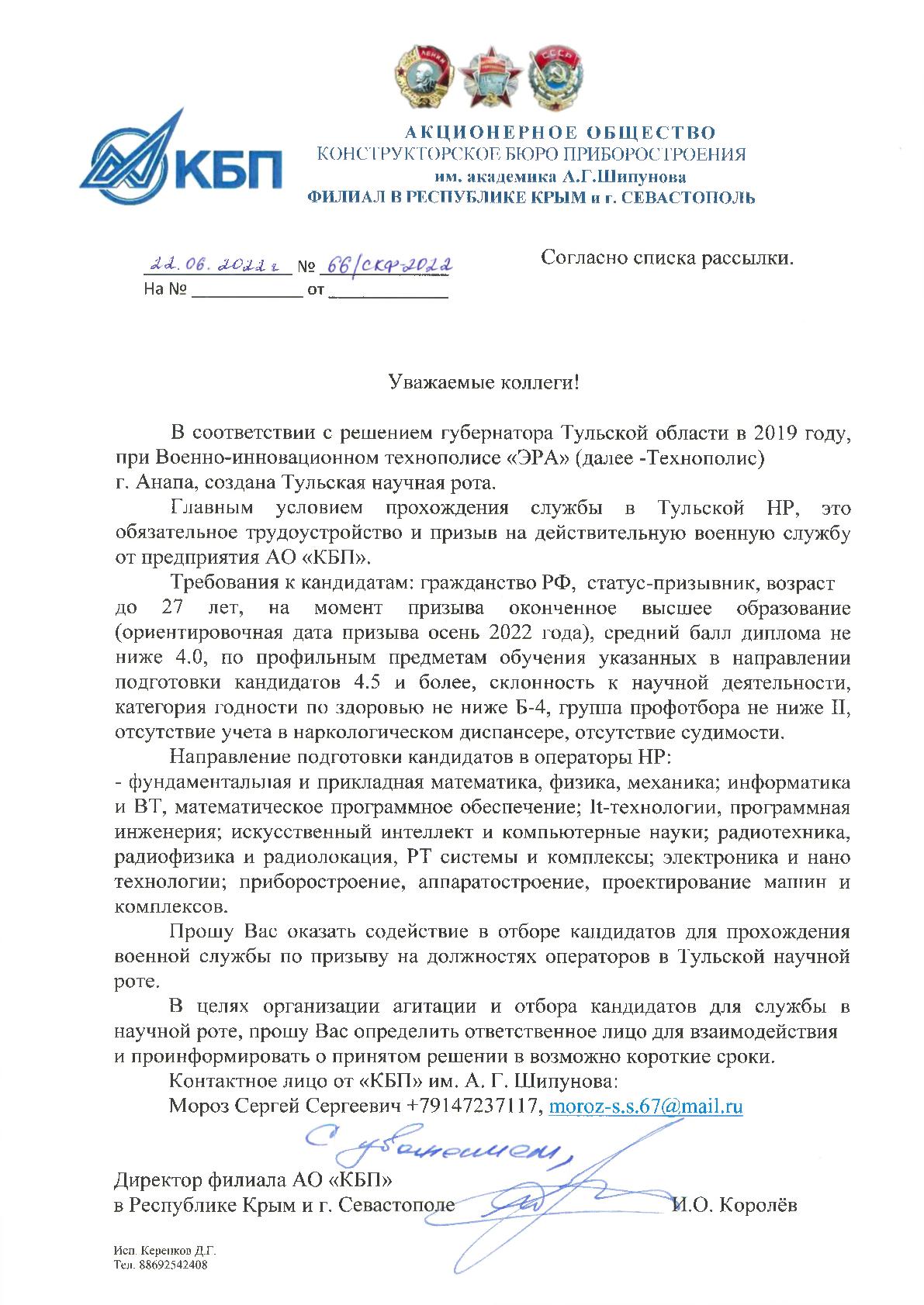Прохождение военной службы по призыву в Тульской научной роте, созданной при Военно-инновационном технополисе «ЭРА» г. Анапа