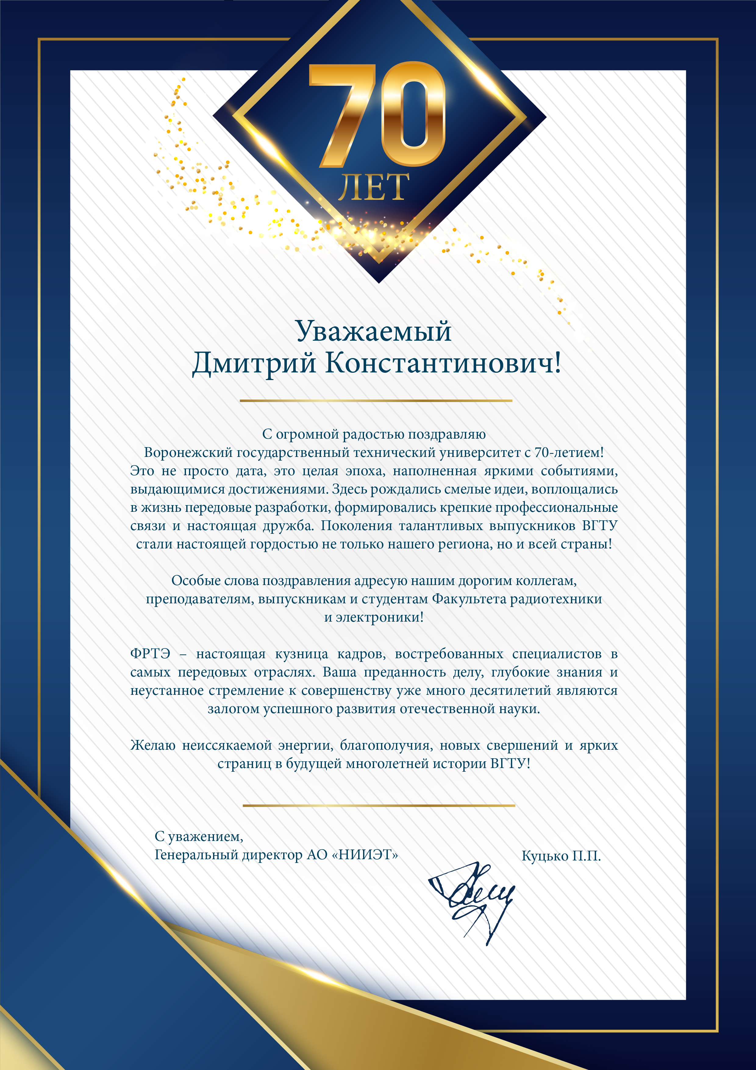 Поздравление генерального директора АО НИИЭТ П.П. Куцько