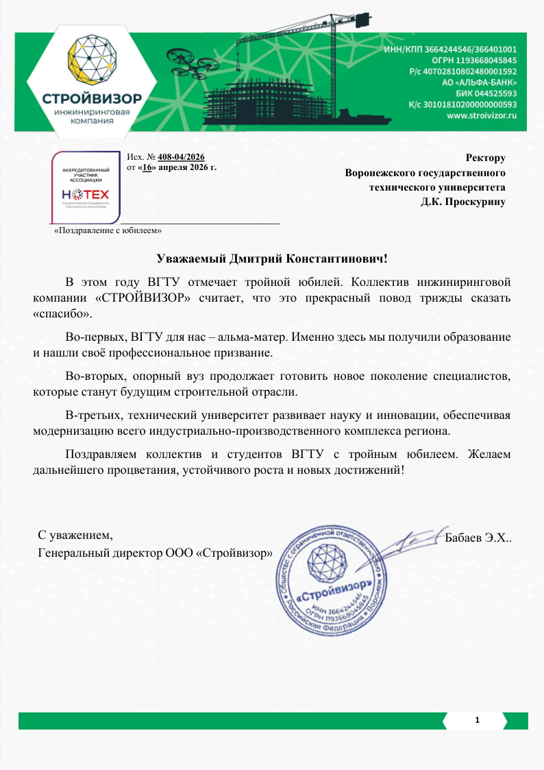 Поздравление генерального директора ООО Стройвизор Э.Х. Бабаева