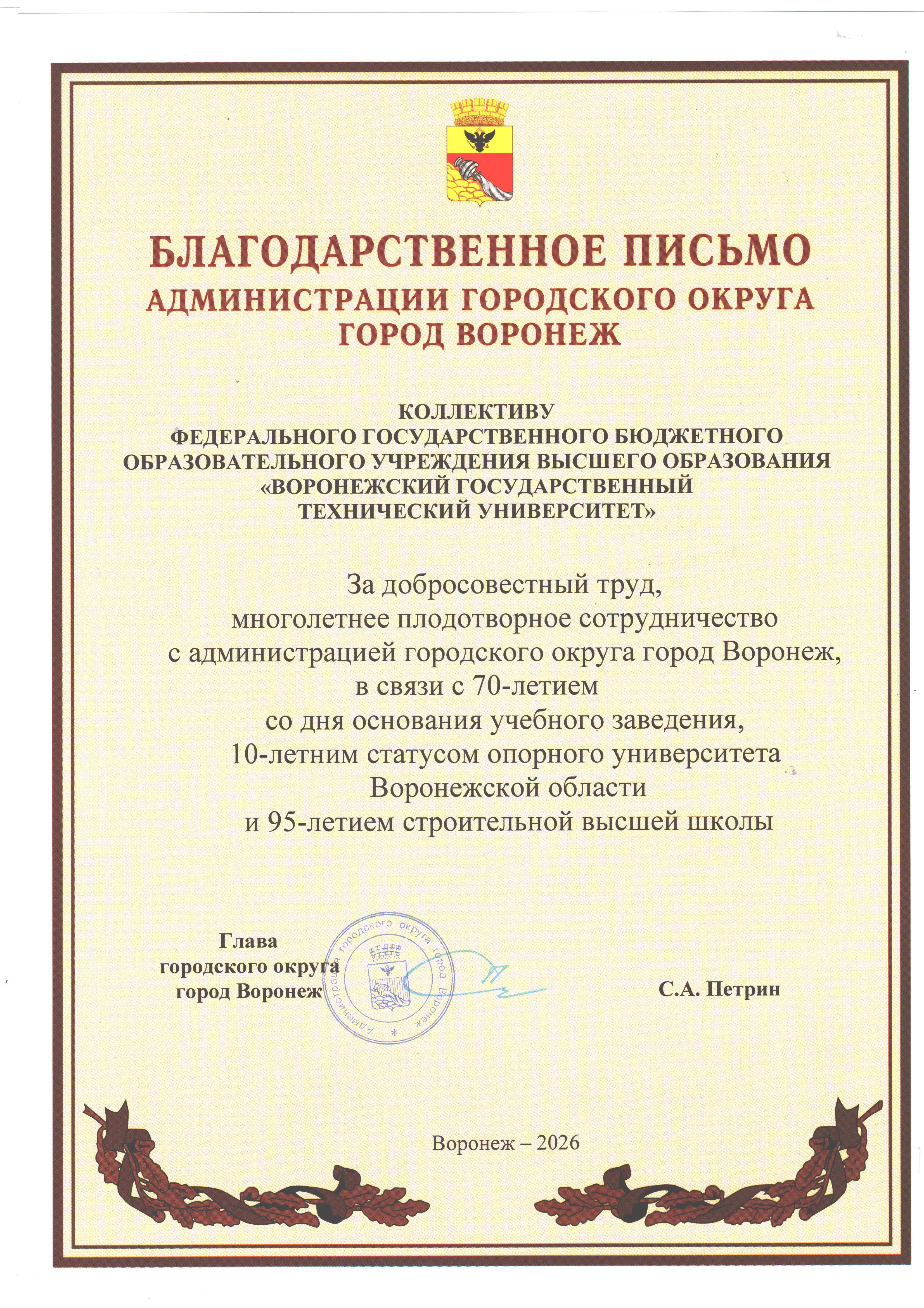 поздравление главы городского округа г.Воронежа С.А. Петрина