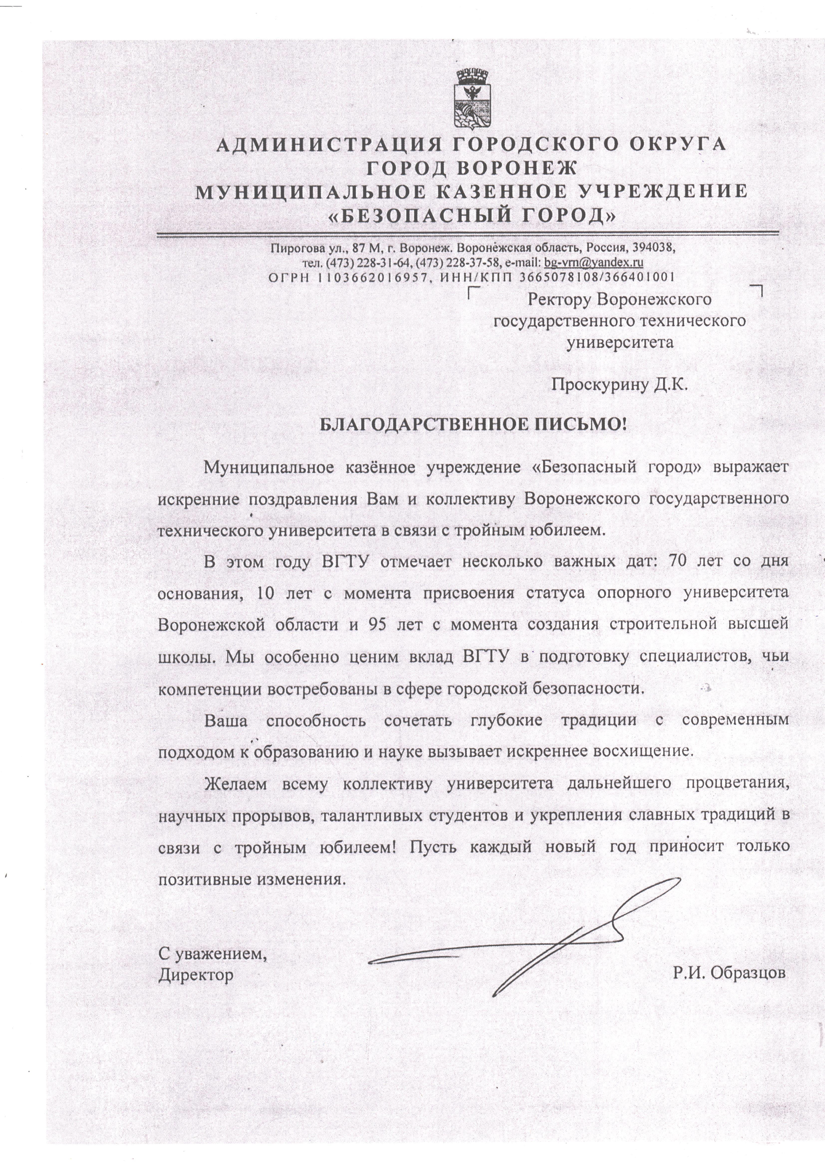 Поздравление директора МКУ "Безопасный город" Р.И. Образцова
